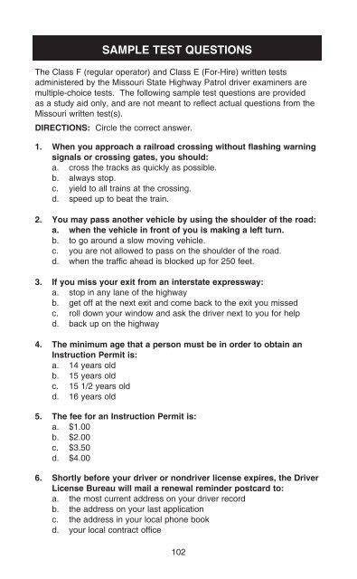 Read Online MISSOURI STATE MERIT EXAM SAMPLE QUESTIONS Doc